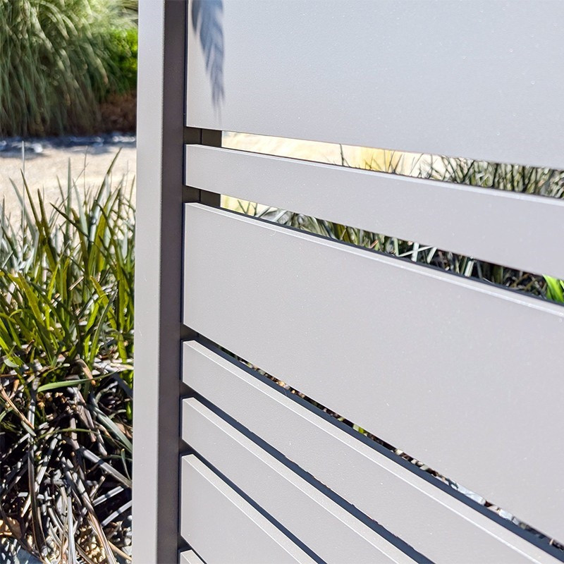 Lame en aluminium thermolaqué de hauteur 60 mm à glisser dans les poteaux pour clôture / brise-vue. Profilé à poser de manière ajourée, pleine ou en claire-voie selon vos envies en intercalant des morceaux de plat 30*2 mm en guise de closoirs de finition. Lame facilement ajustable. Profilé de très haute résistance et thermolaqué dans le respect des labels de qualité Qualimarine et, pour nos décors bois, Qualidéco.
