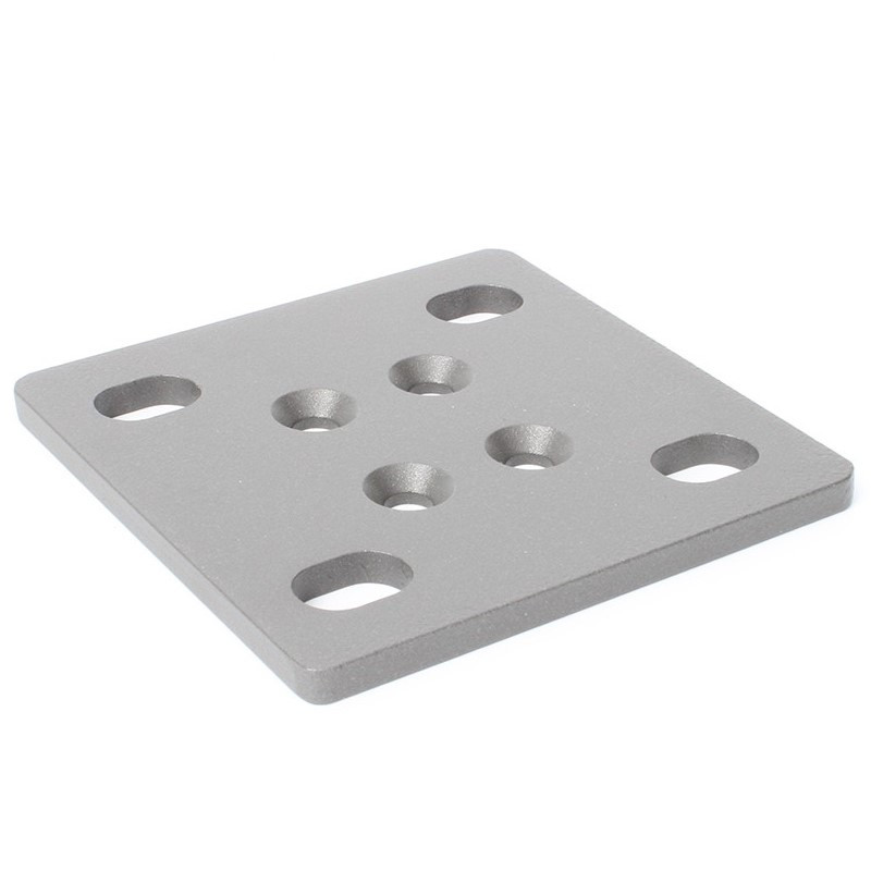 Platine de fixation pour poteau intermédiaire d'épaisseur 6 mm (livrée avec 4 vis inox pour fixer la platine au poteau). Accessoire en aluminium extrudé et thermolaqué dans le respect des labels de qualité Qualimarine et, pour nos décors bois, Qualidéco.